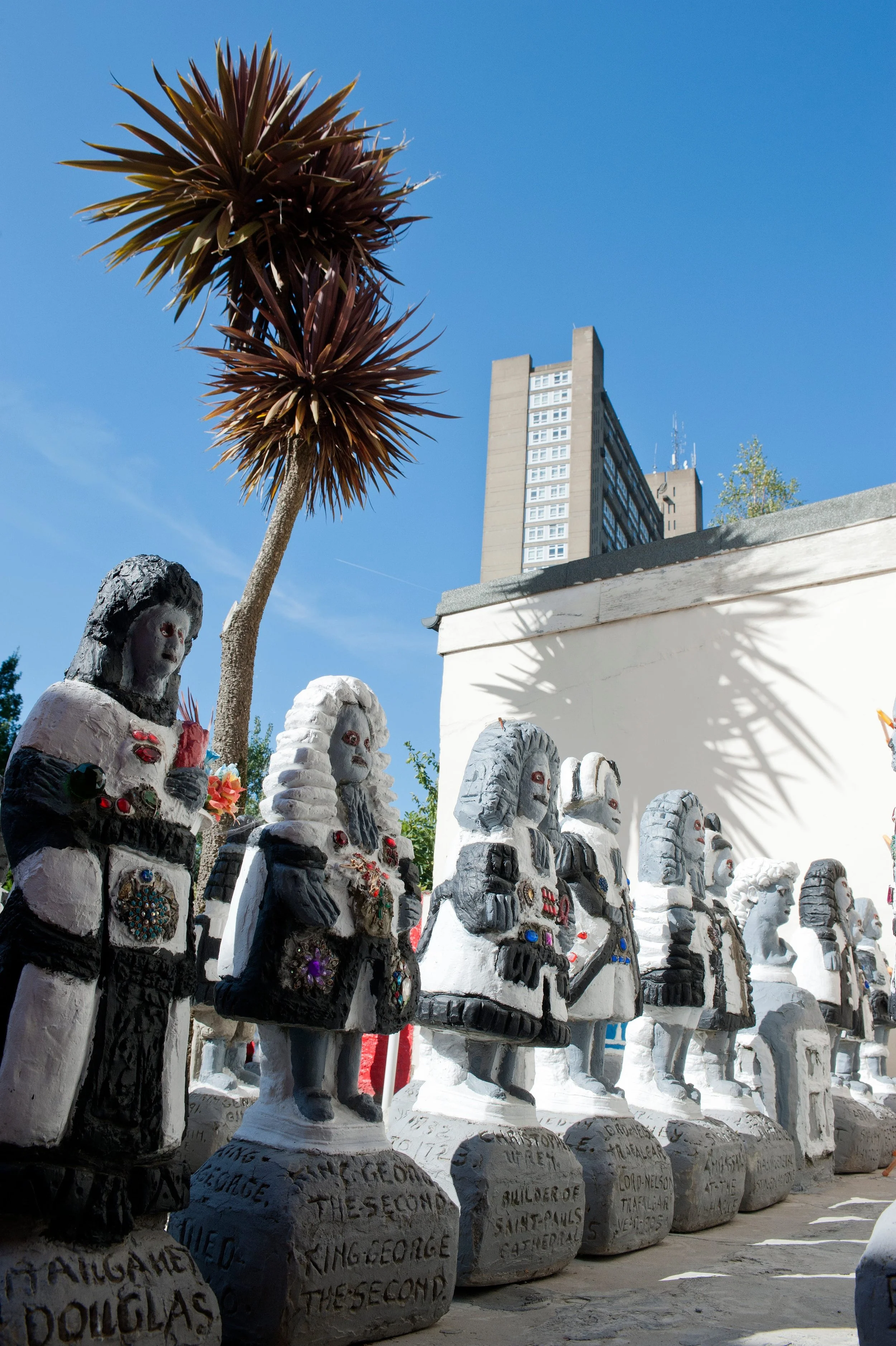 Dalton’s line-up of sculptures stands in the Brutalist shadow of Trellick Tower