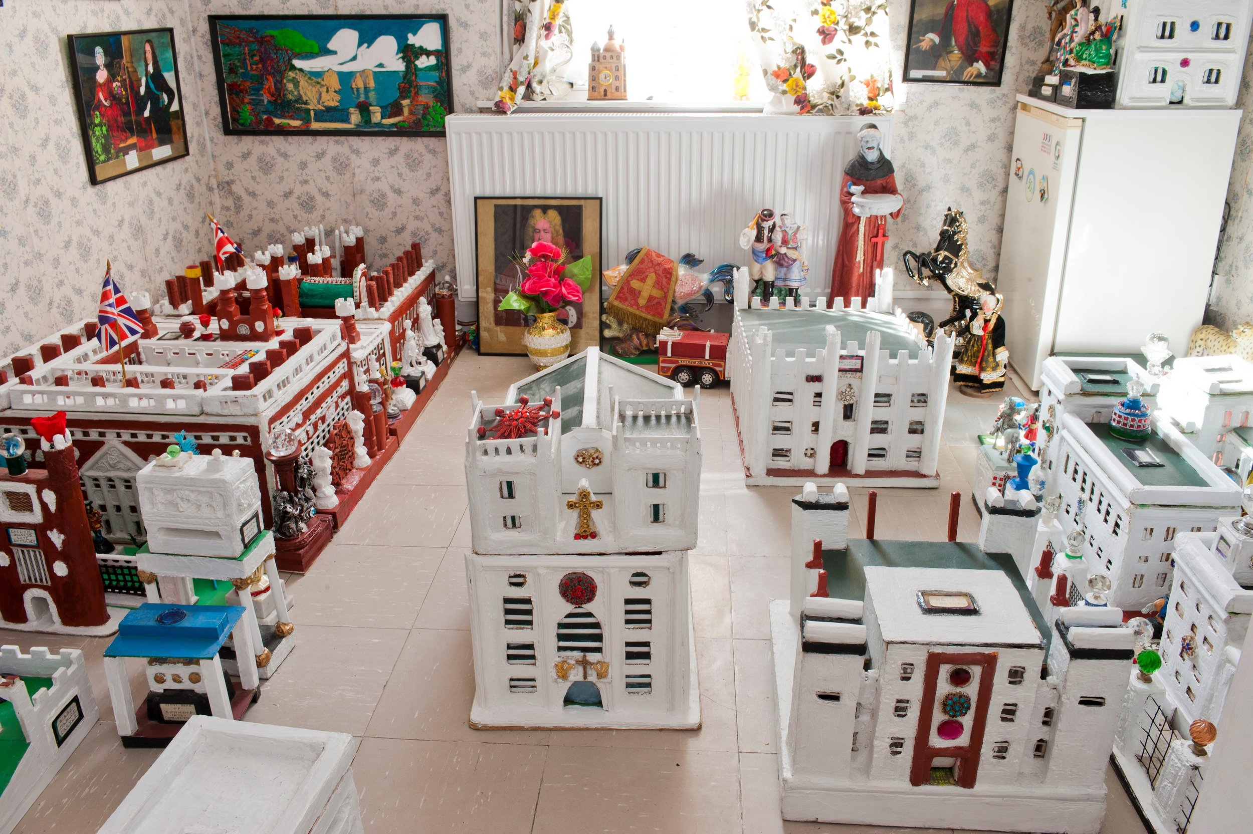 Gerry’s masterpiece, while uniquely recognisable, isn’t the only outsider artist’s home in the UK. There is Sue Kreitzman, who painstakingly decorated her Bromley-By-Bow ex-council flat with dumpster finds, or Stephen Wright’s House of Dreams Museum, opened in 1998 and now bequeathed to the National Trust. Like Dalton, Wright feels an inner urge, writing, ‘I sometimes don’t have a clue what I’m doing and why. I only know it’s the right thing for me to do.’