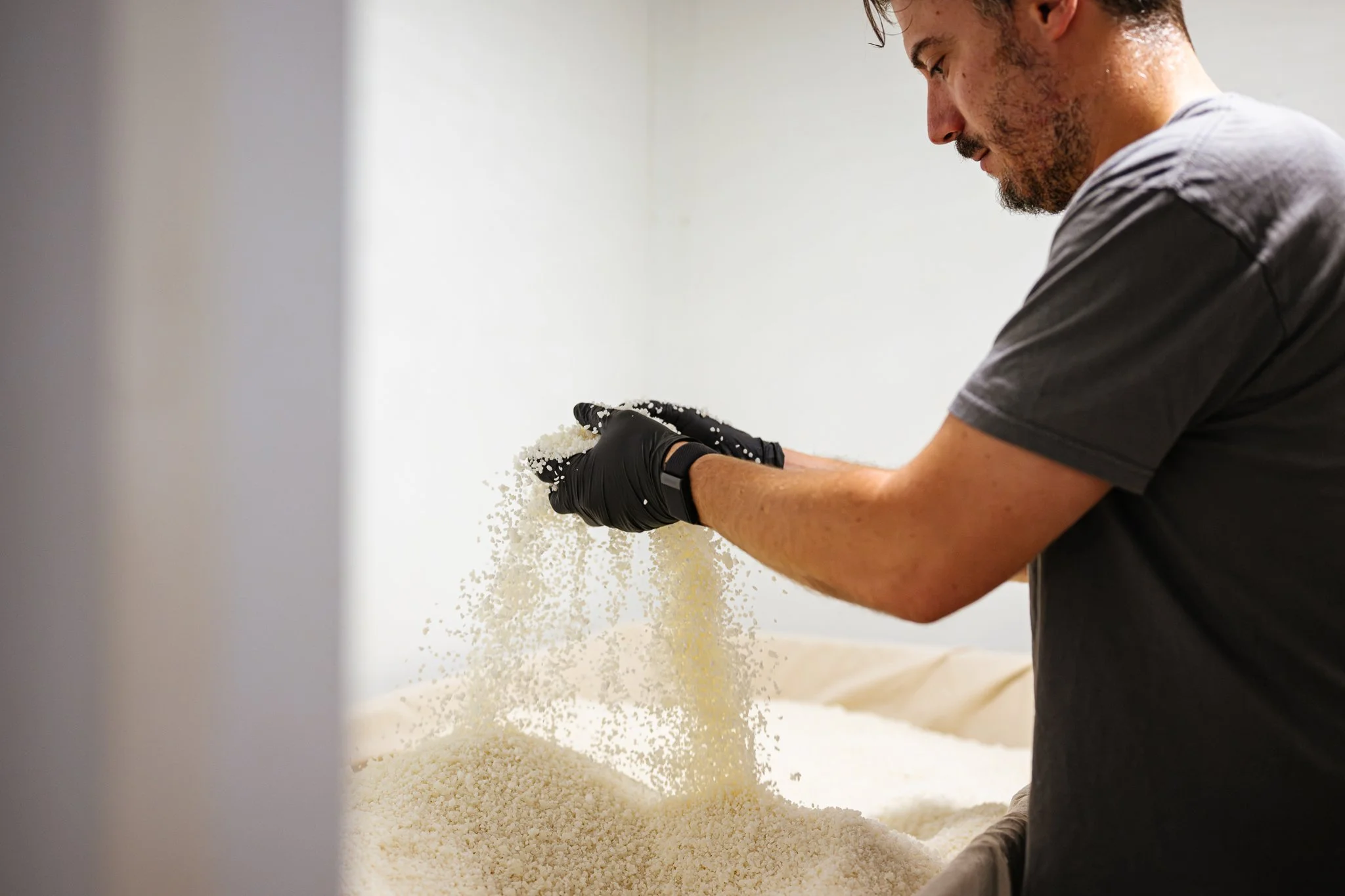 He explains that while wine-making is 90% reliant on raw ingredients and terroir, and perhaps 10% on the wine-maker’s craft, sake is the opposite. Each brewery’s techniques will create distinctive results. Wilson’s proud to point out that every batch of sake uses koji (rice inoculated with edible mould spores, used across Japanese fermentation and brewing) made by the KANPAI team, calling it ‘our most unique IP’. Beaming, he adds, ‘It’s about the people, not the place.’